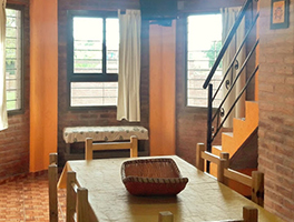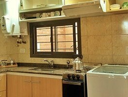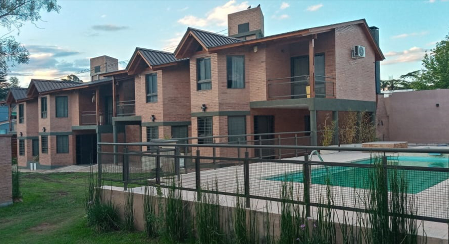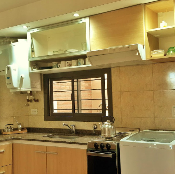 Duplex de 2 dormitorios con ventilador y aire, baño de servicio y baño principal, living comedor cocina con lavarropa, cochera individual con asador. TV cable, WiFi, alarma y amplio patio