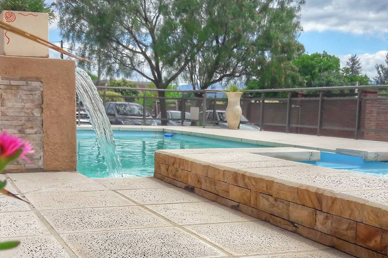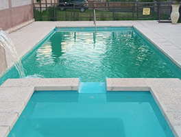 Gran pileta con cascada y Jacuzzi, solarium para tomar sol y relajarse con la famila y/o amigos