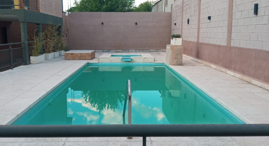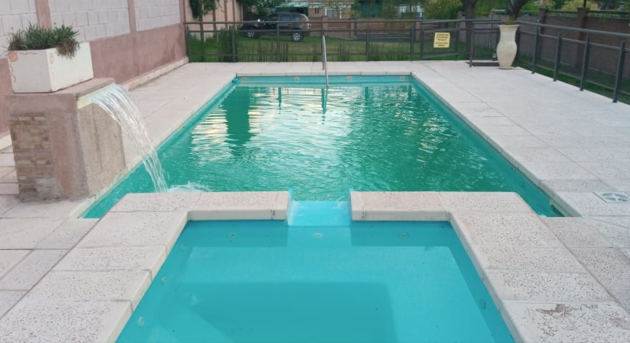 Gran pileta con cascada y Jacuzzi, solarium para tomar sol y relajarse con la famila y/o amigos